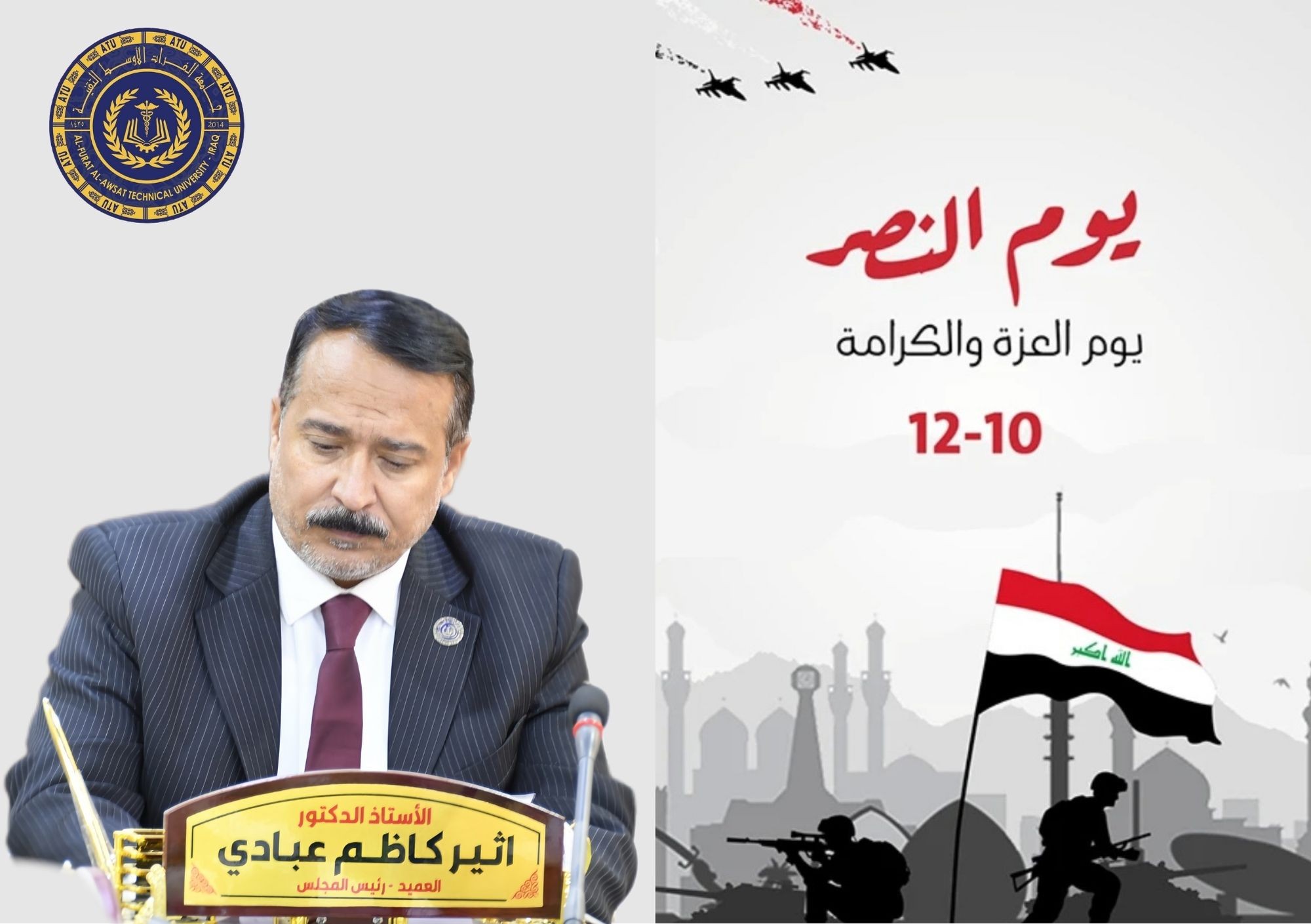 تهنئة السيد عميد المعهد التقني / كوفة بمناسبة عيد... إنه لمن دواعي الفخر و السرور أن أتقدم بأسمى آيات التهاني و التبريكات إلى أبناء قواتنا المسلحة البطلة، قادةً و ضباطاً و مَراتب، بمناسبة الذكرى الخامسة بعد المئة...