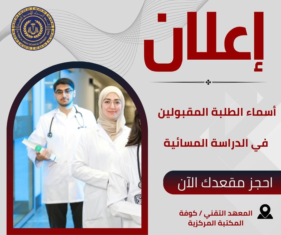 إستمرار اعمال لجان إستقبال طلبة الدور الثالث المتق... عمادة المعهد التقني / كوفة إستمرت باعمال لجان إستقبال طلبة الدور الثالث المتقدمين للدراسة المسائية ليوم السبت الموافق 21/11/2025حيث سَـتكون اللجان بـإستقبا...
