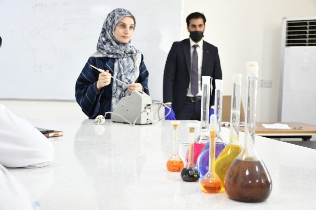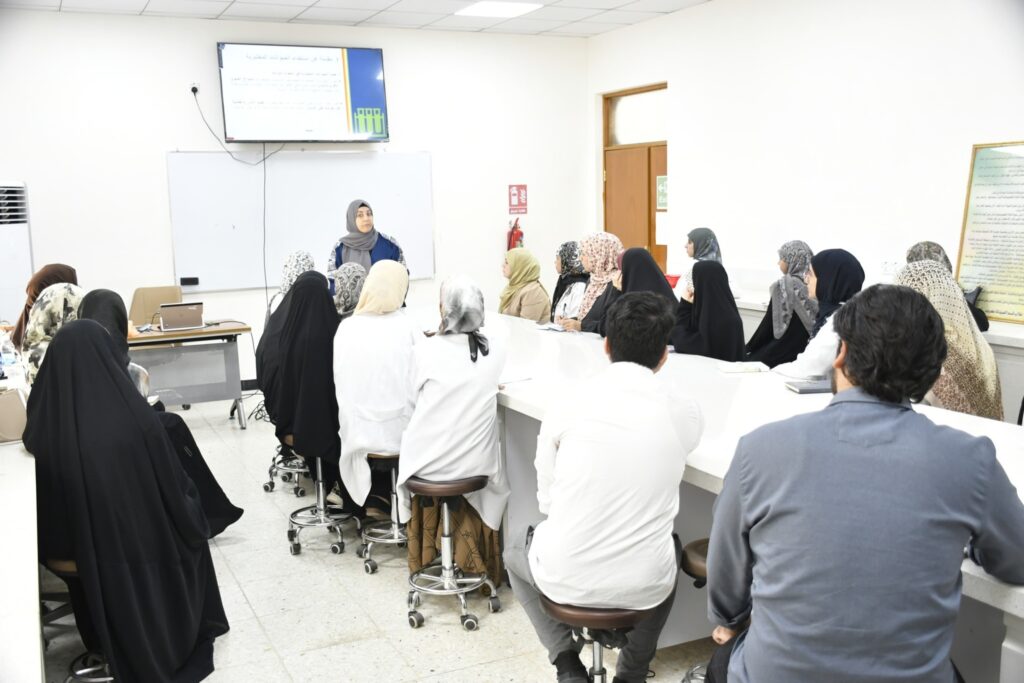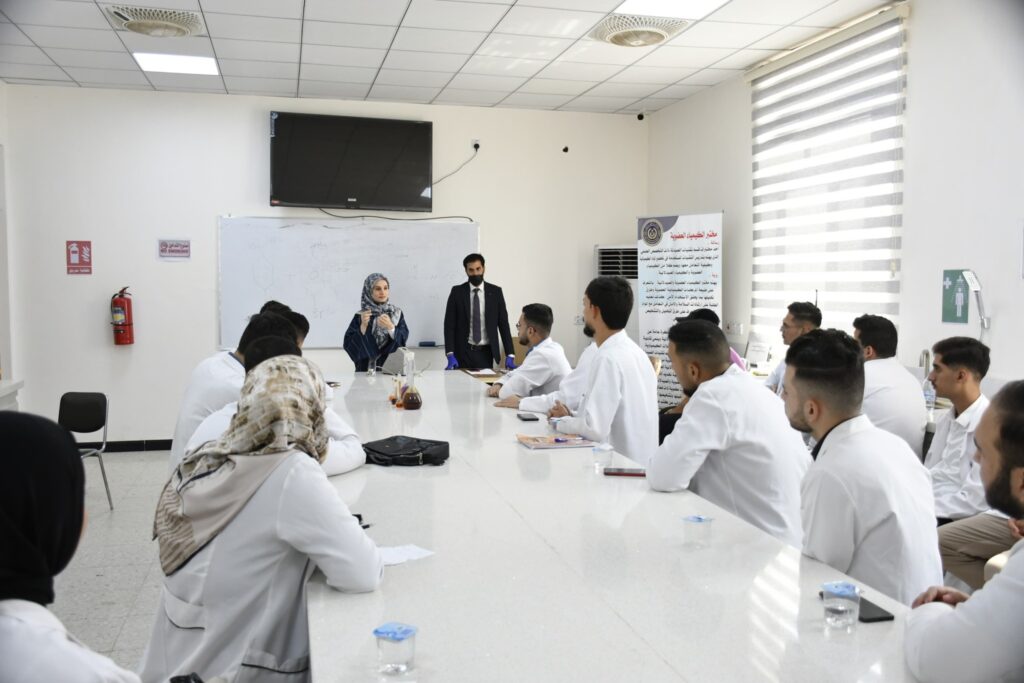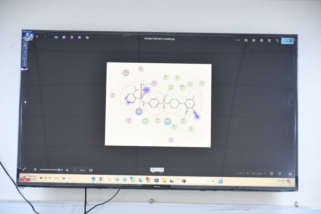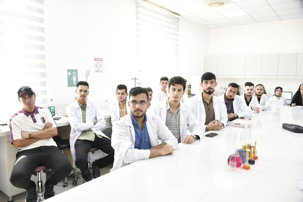 ثم إنتقل الطلبة إلى التطبيق العملي في مختبرات القسم، حيث تم تدريبهم على تحضير و تنقية المشتقات الدوائية. مع التركيز على توظيف البرامج الكيميائية الحديثة في عمليات التشخيص و التحليل مما يُعزز دقة النتائج و يُسرّع من وتيرة الأبحاث.