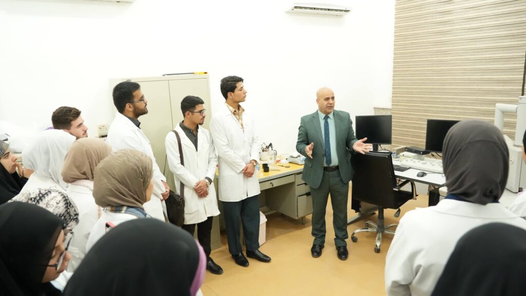 تضمنت الزيارة جولة في المختبرات التخصصية، حيث إطّلع الطلبة على الأجهزة الحديثة المعتمدة في التحليل الدوائي والرقابة النوعية، من بينها جهاز الكروماتوغرافيا السائلة عالية الأداء (HPLC)، جهاز المطياف الضوئي (UV-Vis Spectrophotometer)، و جهاز التحليل الطيفي بالأشعة تحت الحمراء (FTIR)، فضلاً عن أجهزة تحليل المستحضرات الصيدلانية و إختبارات الثباتية و الجودة ، و أجهزة فحوصات المناعة، والتي تُعدّ من الركائز الأساسية في المختبرات الطبية الحديثة.