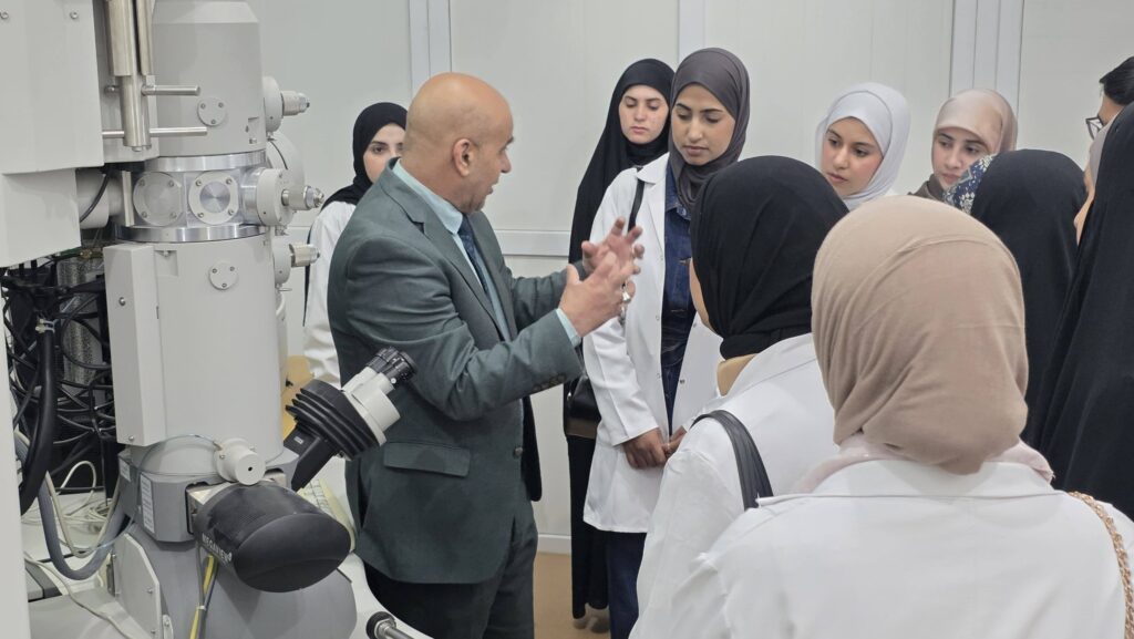 كما شملت الزيارة التعرف على وحدة المجهر الإلكتروني الماسح (SEM) و المجهر الإلكتروني النافذ (TEM)، مع شرح تطبيقي لأهم إستخداماتهما البحثية و التشخيصية.