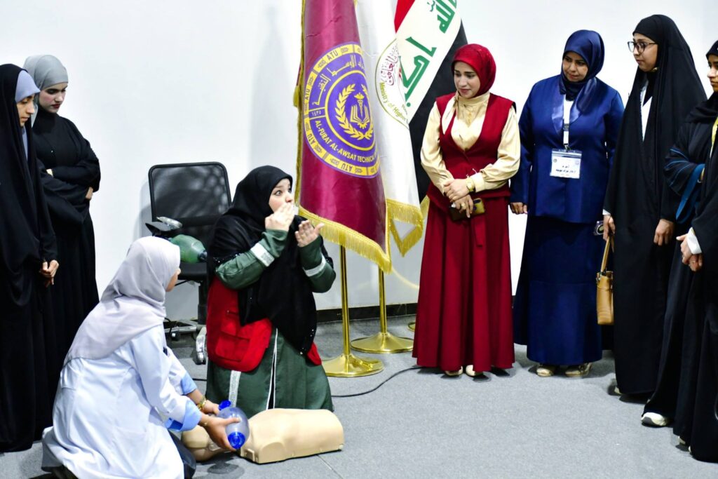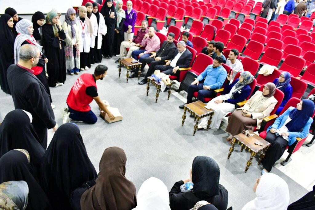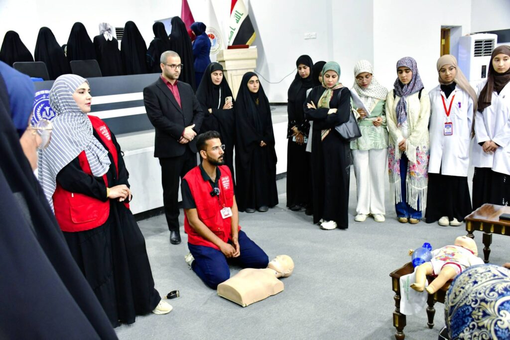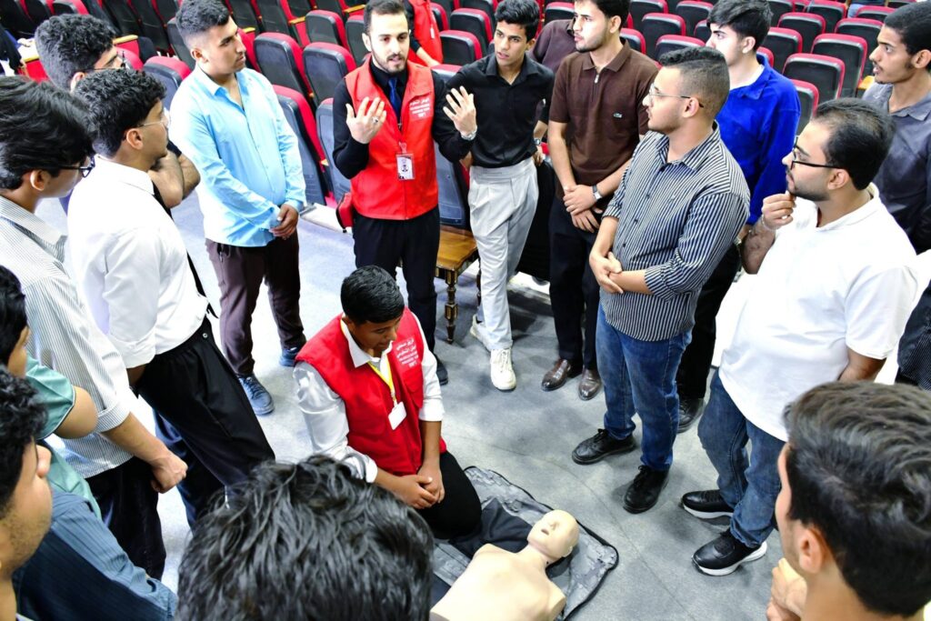 حيث قدم أعضاء الفريق تطبيقات عملية مكثفة حول الإسعافات الأولية الطارئة و كيفية التعامل السريع مع الحوادث اللحظية و إنقاذ حالات الاختناق إذ تم استعراض المناورات الجسدية الصحيحة لفتح المجرى التنفسي.