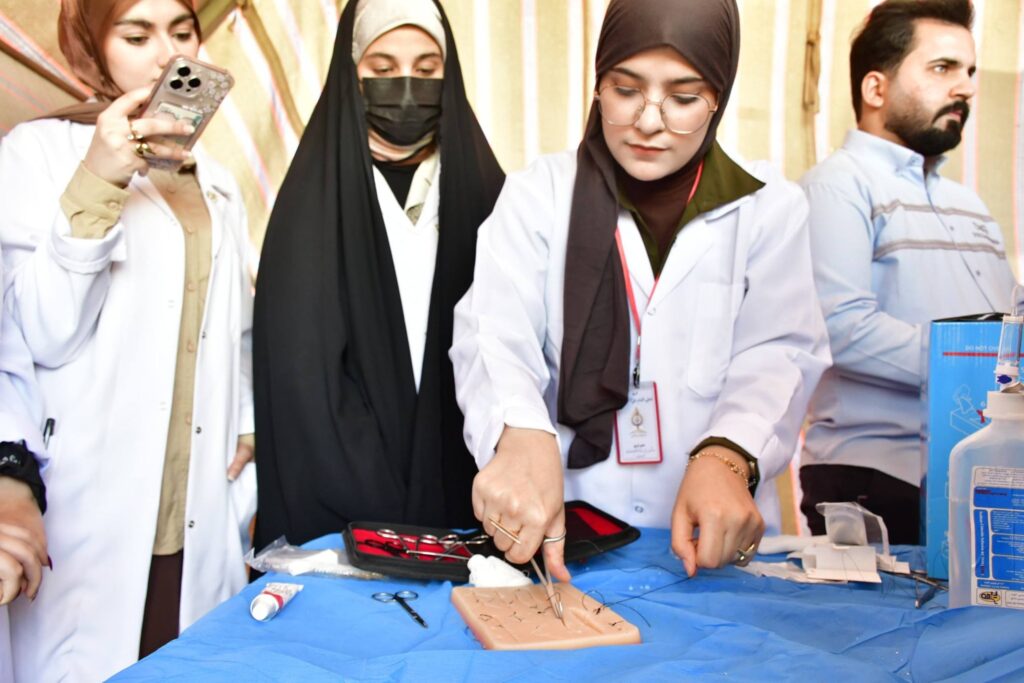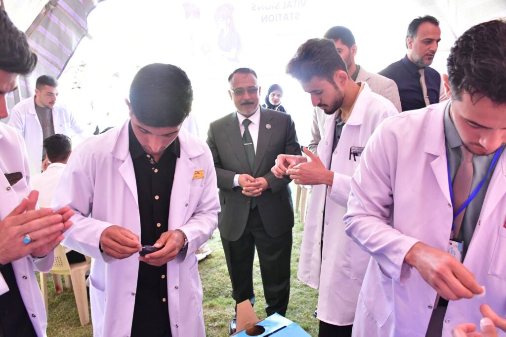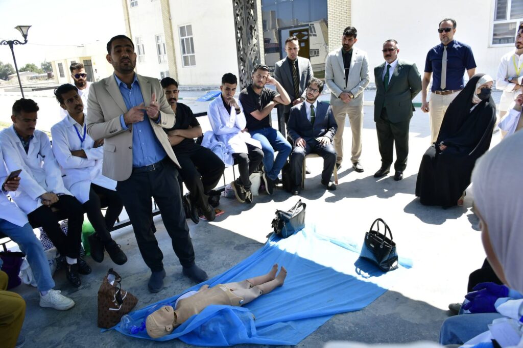 من جانبه أكد السيد رئيس القسم أ.م.د. أحمد جاسم محمد ، أن إختيار المساحات المفتوحة للمخيمات يهدف إلى كسر الجمود الدراسي و جعل المتدرب يشعر بمسؤوليته كمُسعف أولي في أي مكان يتواجد فيه، و ليس فقط داخل المؤسسات الطبية .