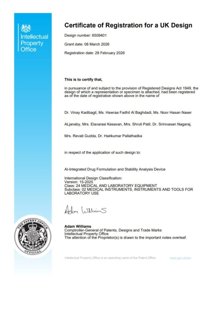 و يُعد هذا الإبتكار طفرة نوعية في مجال الصيدلة و البحث العلمي؛ إذ يعتمد على تقنيات الذكاء الإصطناعي لتحليل إستقرار المركبات الدوائية و تحديد دقة تركيباتها الكيميائية بسرعة و كفاءة عالية، مما يختصر وقتاً طويلاً من الفحوصات المختبرية التقليدية و يقلل من نسب الخطأ البشري.